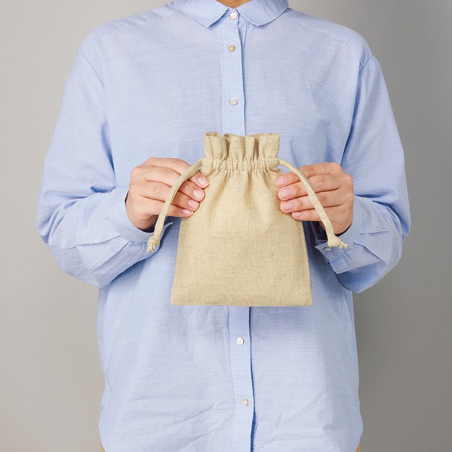 コットン、リネン混でしなやかで丈夫な巾着です♪